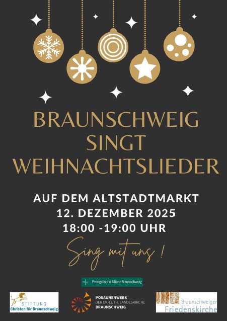 Dieses Jahr findet bereits das 6. Braunschweiger Weihnachtssingen statt, und zwar am Freitag, den 12.12.2025 von 18.00-19.00 Uhr wieder auf dem Braunschweiger Altstadtmarkt.